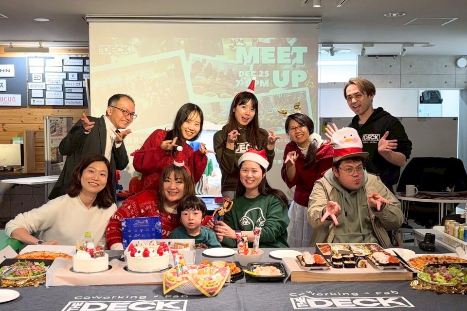 日本語も英語も飛び交う環境で、「今年の振り返り」」や「新年の豊富」を語り合いました。今年は海外メンバーも増えたThe DECK。