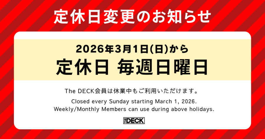 The DECK会員の皆様は、休業期間中もご利用いただけます。